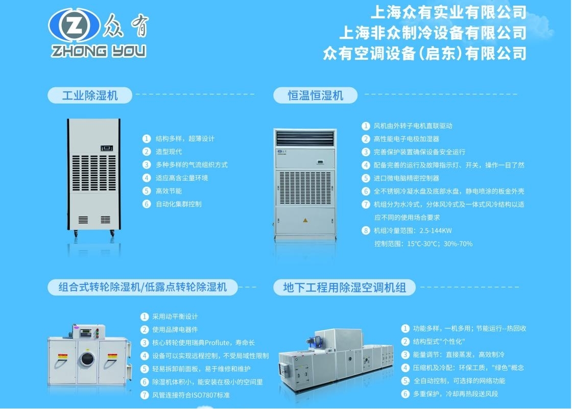 眾有實業(yè)始終堅持"技術(shù)立企"發(fā)展戰(zhàn)略,不斷加大研發(fā)投入,從而完成技術(shù)上的持續(xù)革新。基于雄厚的研發(fā)背景,截至2022年底,眾有實業(yè)擁有工業(yè)空調(diào)及除濕加濕授權(quán)技術(shù)多大一百多項,我們可以設(shè)想在這種環(huán)境下誕生的產(chǎn)品,品質(zhì)一定更有保障。